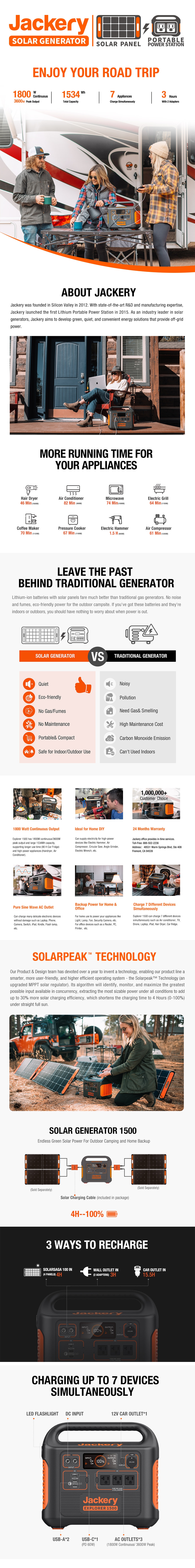 Jackery, founded in California in 2012 with the vision of offering green energy to everyone, everywhere, has emerged as a trailblazer in the solar generator sector and a globally renowned top-seller. With the support of over 4 million users and the endorsement of 200 authoritative media and organizations worldwide, Jackery has solidified its reputation as a reliable industry leader. By introducing solar generators to the great outdoors, Jackery fulfills the power needs of nature enthusiasts, all while motivating them to embark on more sustainable explorations and adventures.