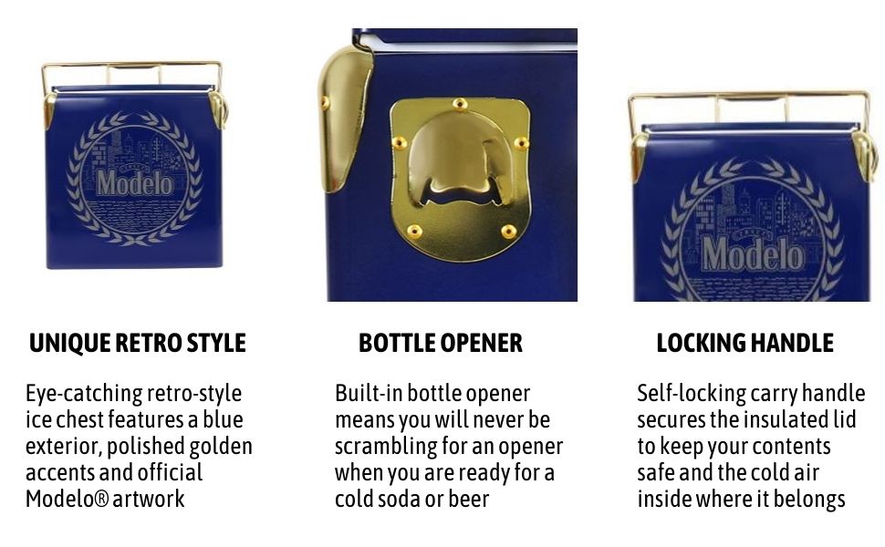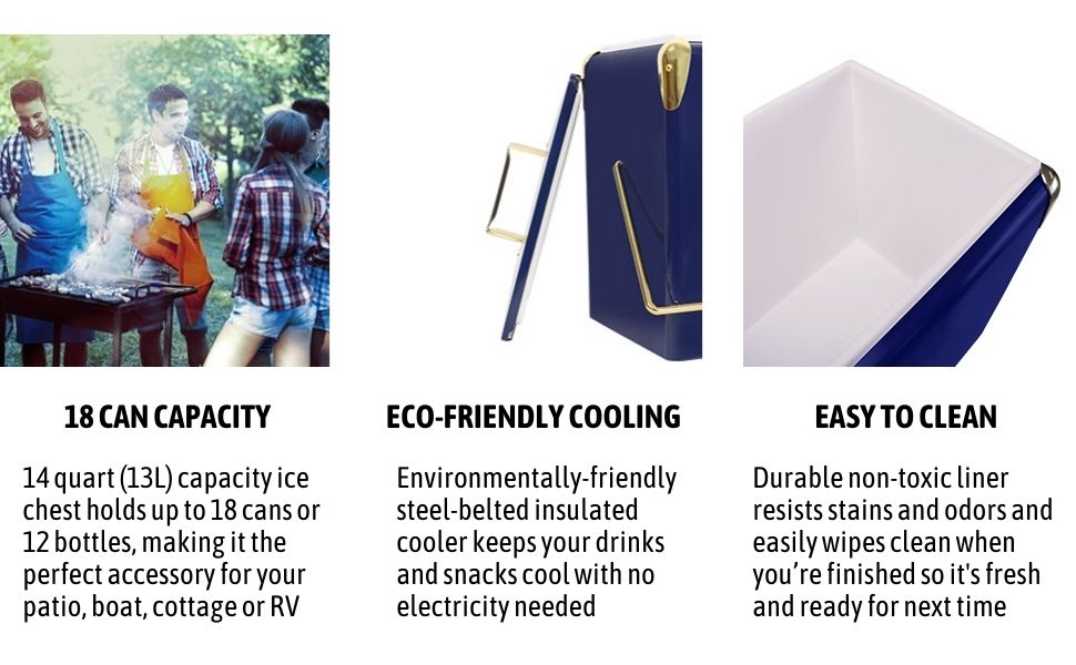 Rugged steel-belted cooler comes with a convenient built-in bottle opener. It is the perfect accessory for day trips, boating, or backyard BBQ. Fill it up with ice and pre-chilled drinks and snacks for maximum cooling that goes the distance!