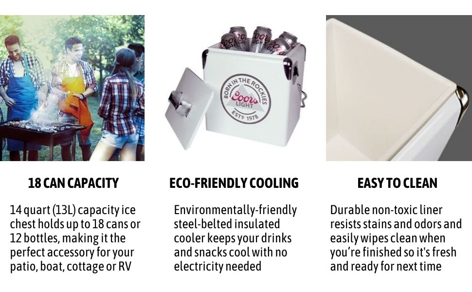Koolatron RetroIce Chest Beverage Cooler with Bottle Opener 13L (14 qt.) 18 Can, White and Silver